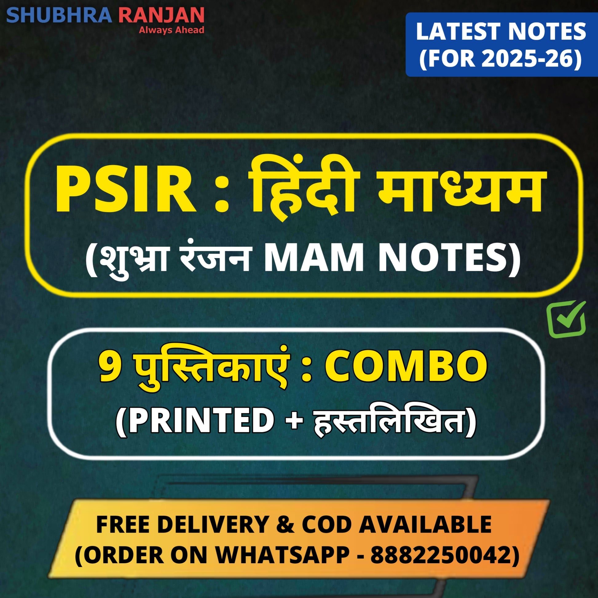 Shubhra Ranjan Hindi Medium PSIR Optional Printed+Handwritten Notes (9 Booklets)