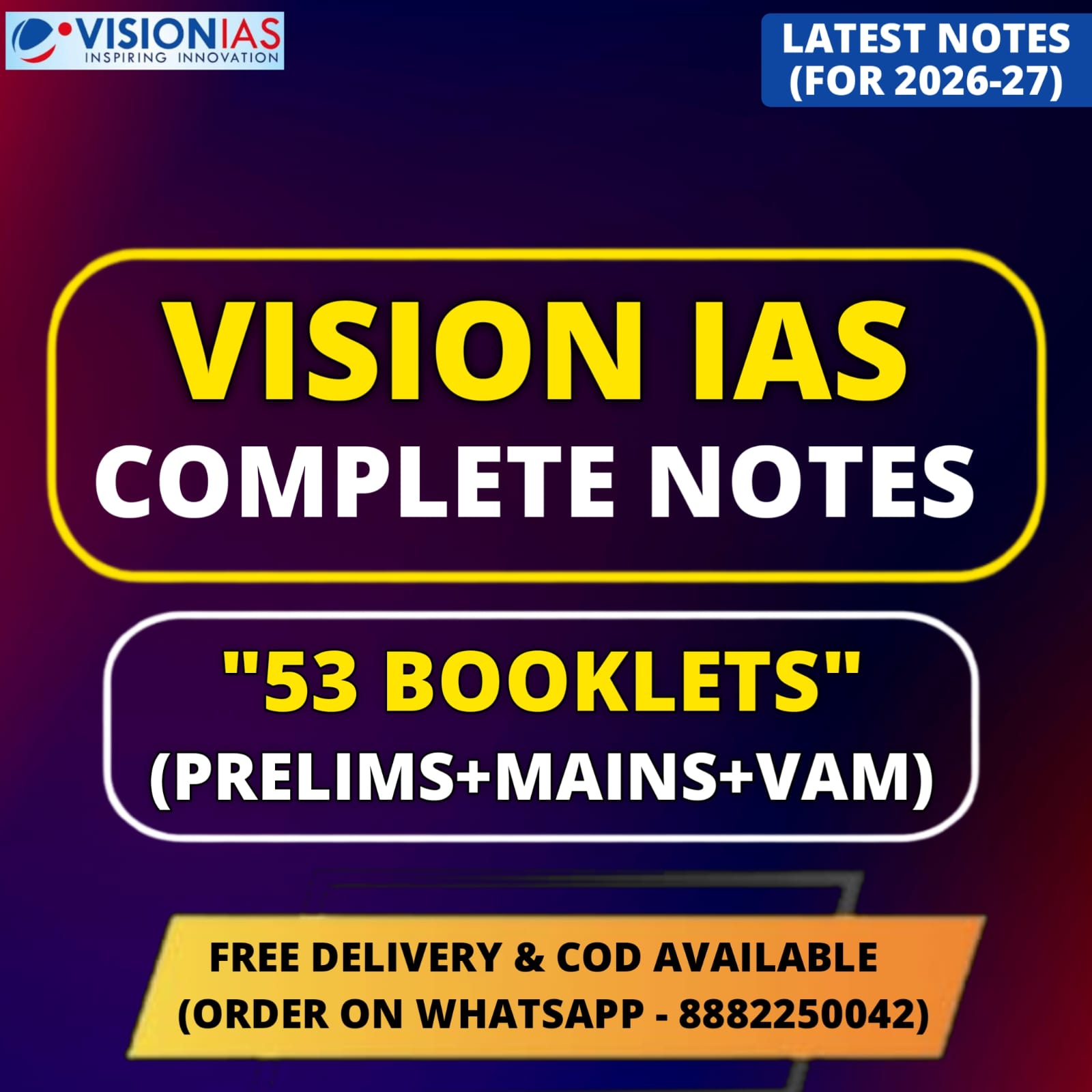 Vision IAS Complete Notes 2026 (Prelims+Mains+VAM)| Best UPSC Notes | 53 Booklets - English Medium